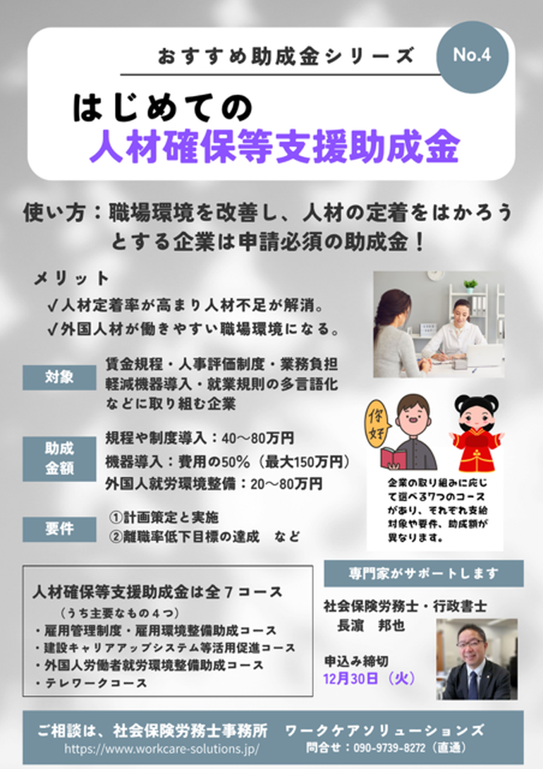 おすすめ助成金5選_その④:人材確保等支援助成金
