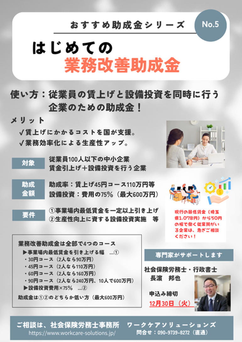 おすすめ助成金5選_その⑤:業務改善助成金